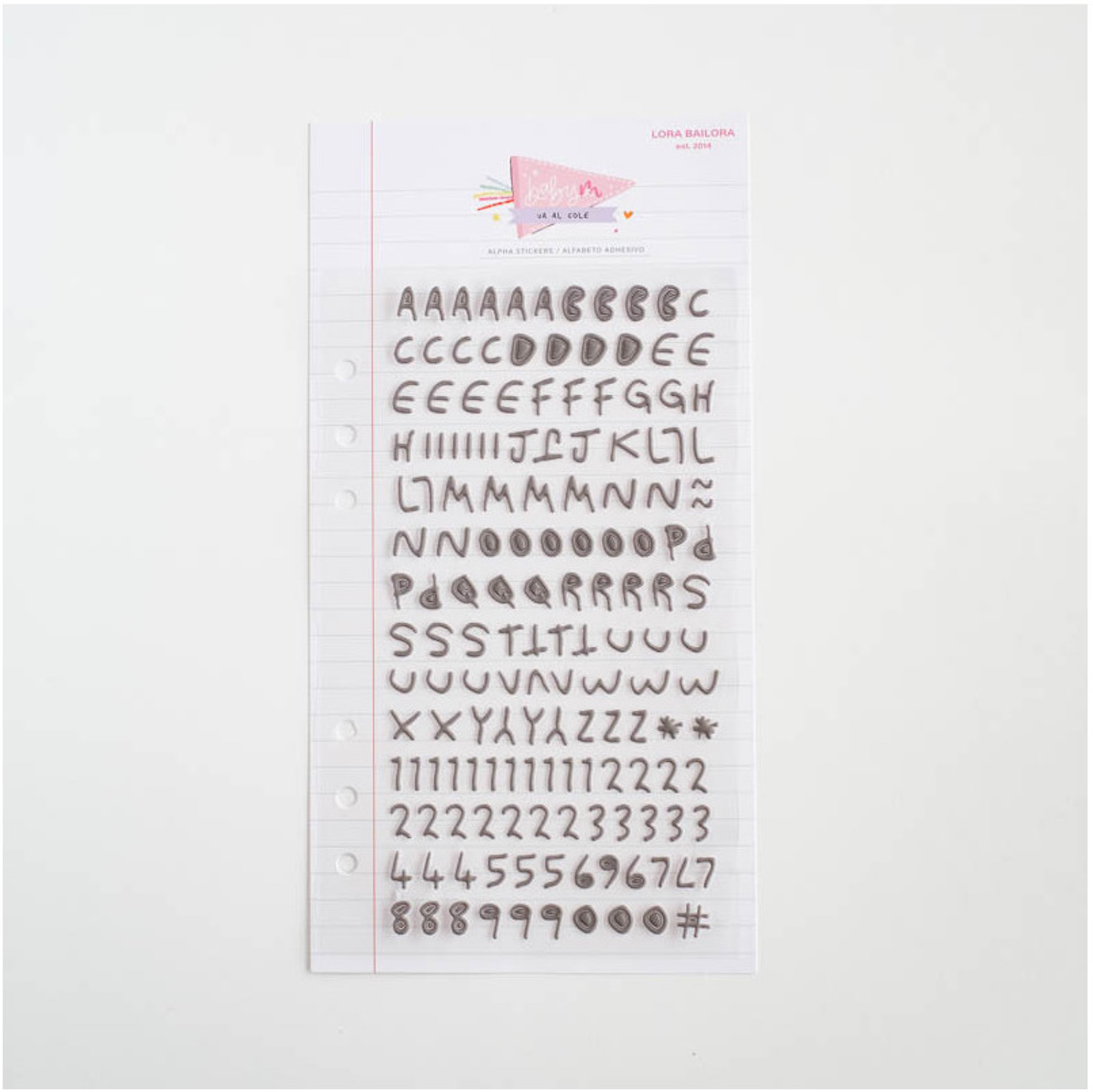 – Contenido: una hoja con stickers que incluyen letras, números y símbolos.