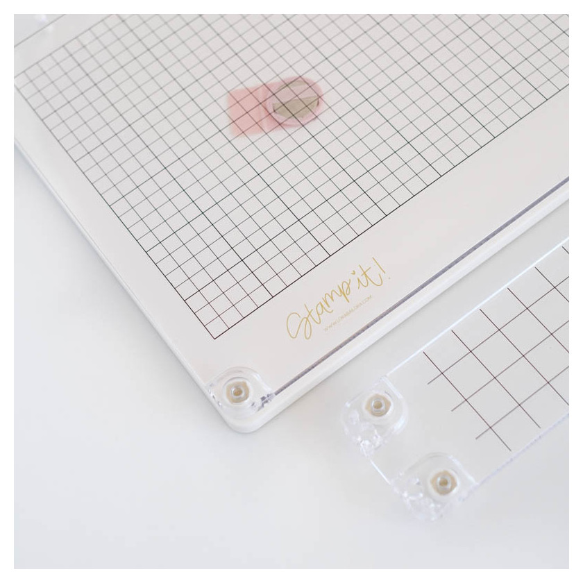– Incluye una guía de alineación de 20 x 5 cm con la que gracias a los pivotes laterales podrás crear estampados de repetición consiguiendo distancias equidistantes.