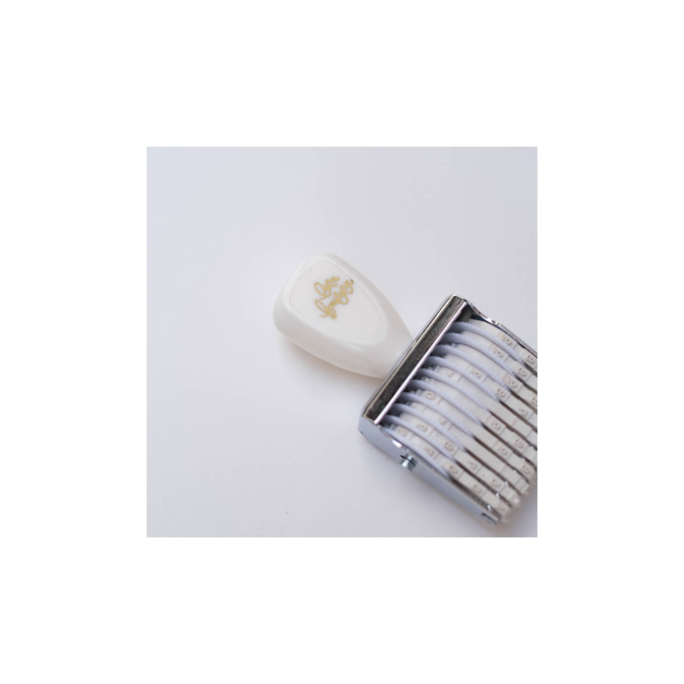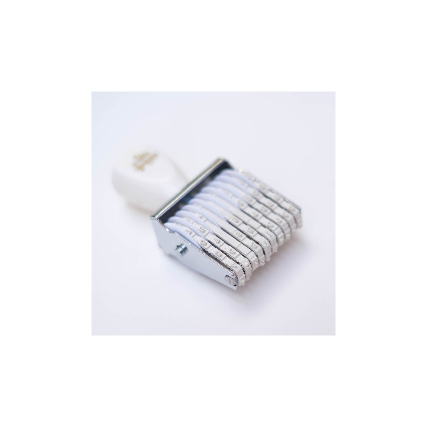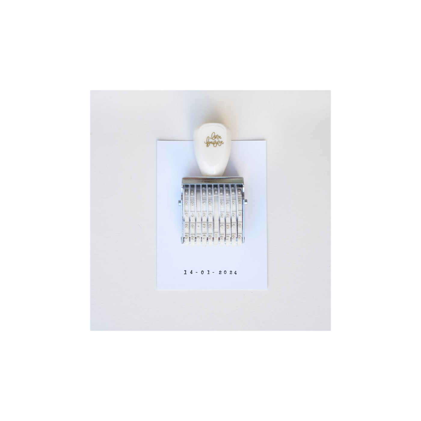 Modo de empleo: Este modelo de roller es un fechador perpetuo, te permitirá estampar cualquier fecha que necesites y no tiene caducidad. Lleva incorporadas 10 gomas, de las cuales ocho tienen números del 0 al 9 y dos de ellas con símbolos que actúan como separadores (estrella, punto, barra…). Tendrás que ir girando la parte plástica de cada una de las gomas para conseguir la fecha y formato que tú elijas. Una vez configurado tan sólo tendrás que entintar y estampar para conseguir el fechado perfecto. Dado el tamaño te recomendamos que uses una tinta que proporcione detalles finos y hagas pruebas antes. El tamaño de estampación que conseguirás será de aprox. 3,8 cm.