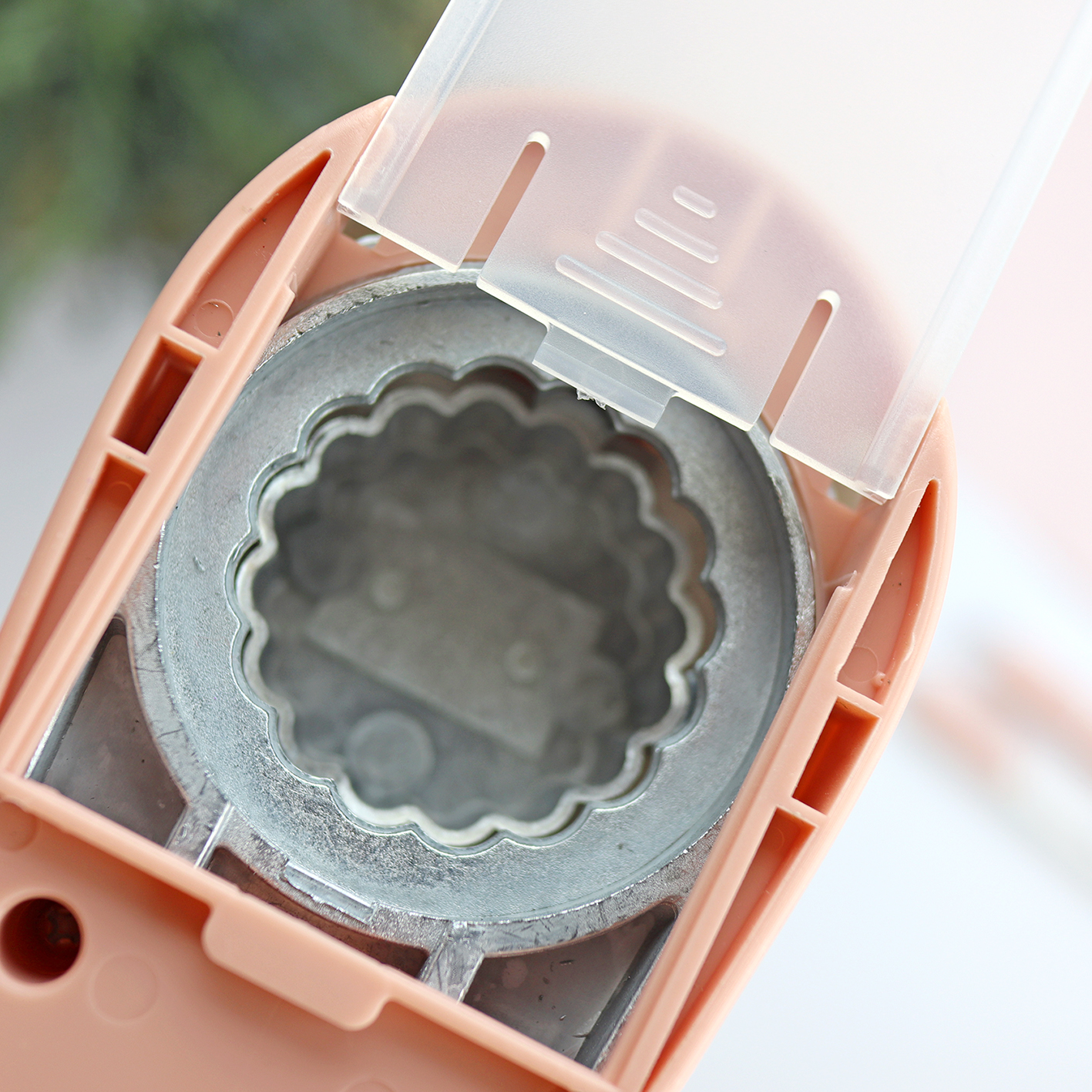 La troqueladora Galleta es una herramienta de mano con la que puedes crear fácilmente troquelados circulares rodeados de festón, para completar tus trabajos de scrapbooking.
