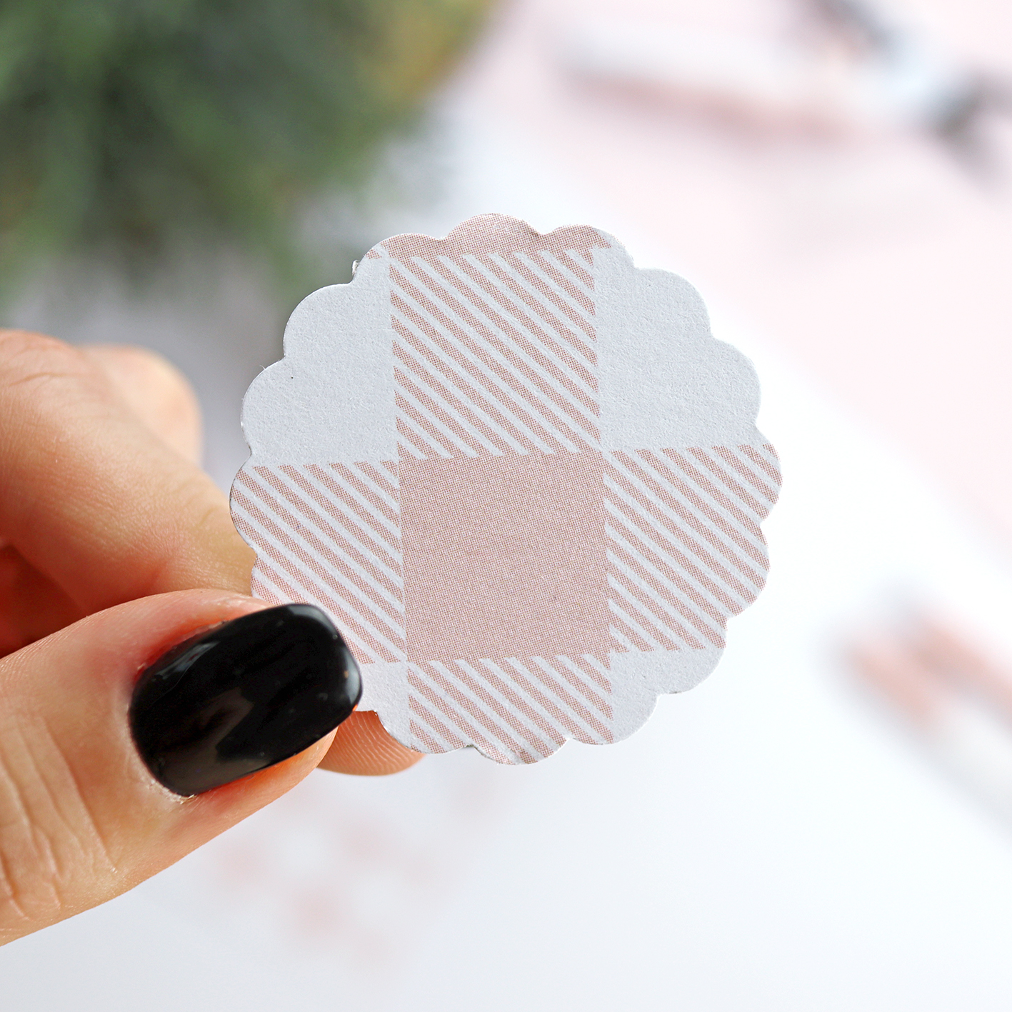 También puedes convertir el troquelado en una etiqueta, haciéndole un agujero y colgándola con ayuda de una cadena de bolitas.
