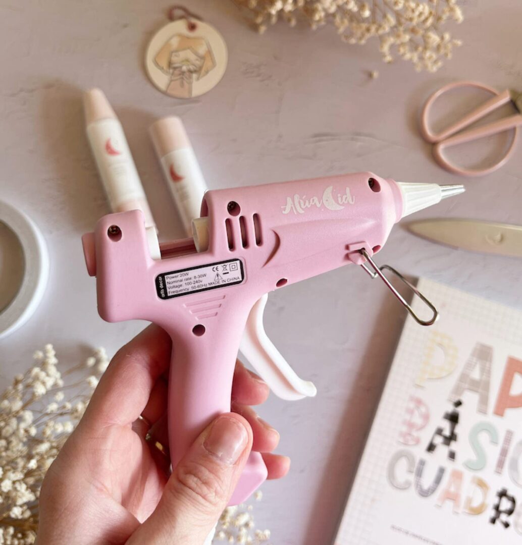 Esta pistola de pegamento caliente te facilita el pegado de elementos que se te resisten, como las chapas plásticas para scrapbooking y las piezas de metacrilato. Además te ayuda a adherir cartón extra grueso o madera.
