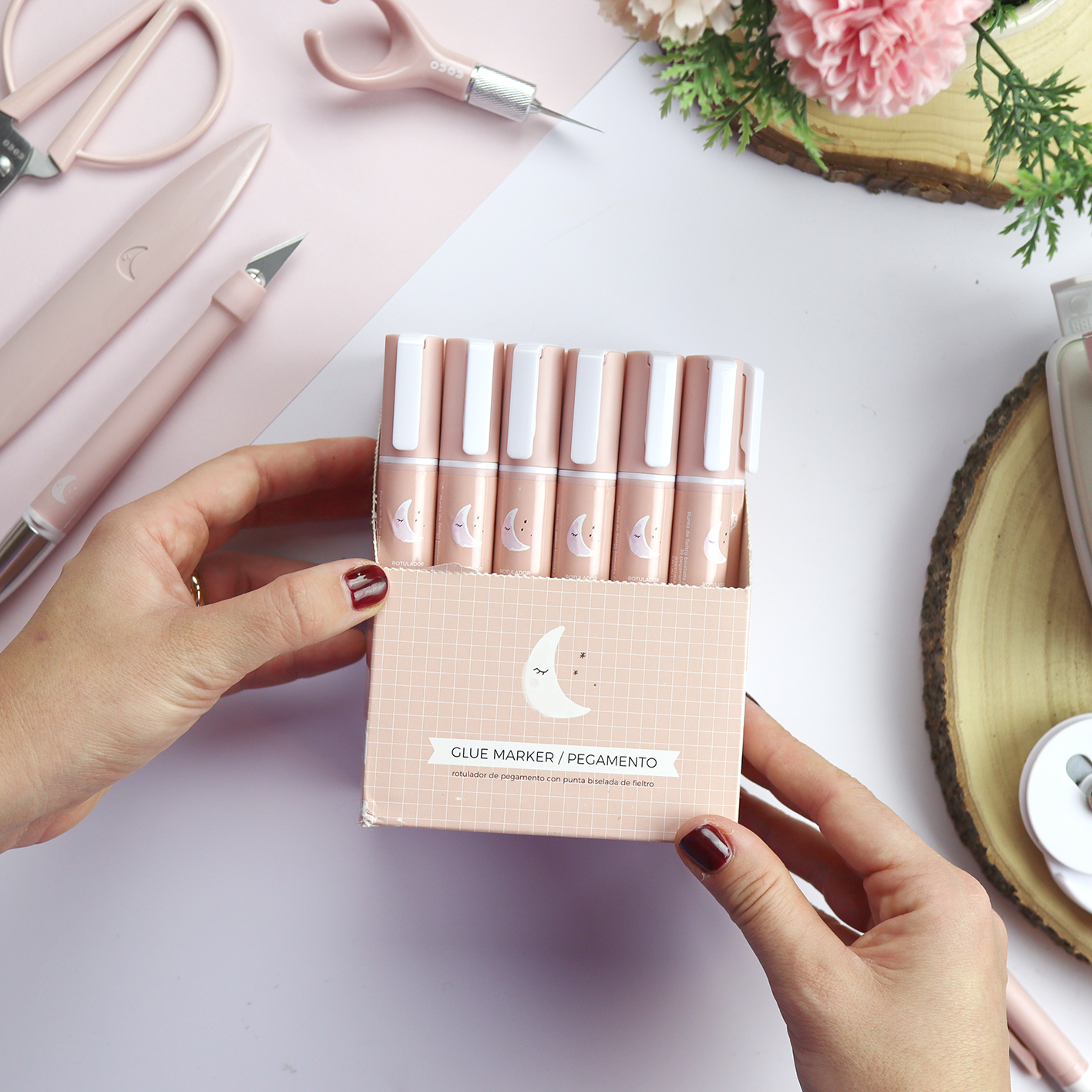 Este rotulador de pegamento lleva una punta de precisión de fieltro, por lo que es muy adecuado para pegar tus fotos. Tres pasadas con él y ¡listo!