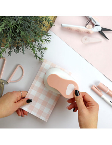 La troqueladora Pera es una troqueladora de mano con la que puedes crear fácilmente etiquetas que luego puedes añadir a tus trabajos de scrapbooking.